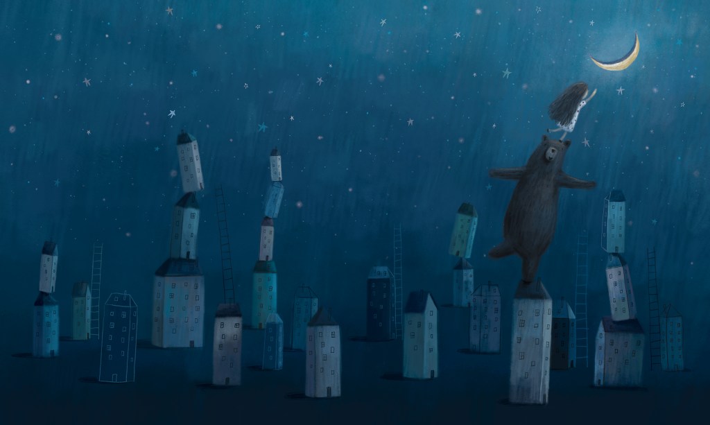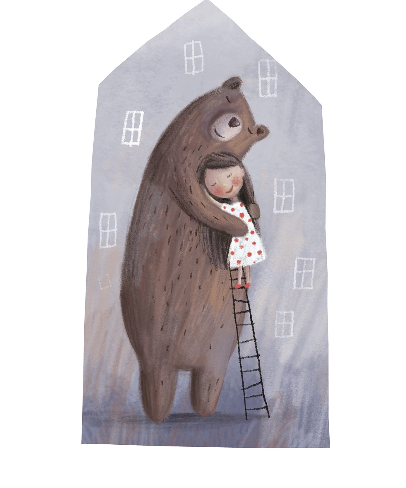 Meda devojčici pruža pruža sigurnost (kada je uplašena, prehlađena ili kada je vreme za spavanje), podstiče kreativnu igru (penjanje na brdo da bi dohvatili sunčeve zrake), učenje (zajedno otkrivaju moć knjiga i pitaju se čiji je mesec, tj. “ukotvljeni brodić na nebu“).